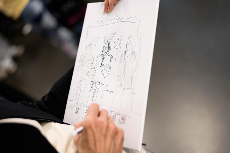 Pressemappenzeichnung von Christine Baumann bei "Prosuming Art" Eröffnung (22.10.2025) Foto: eSeL.at - Joanna Pianka